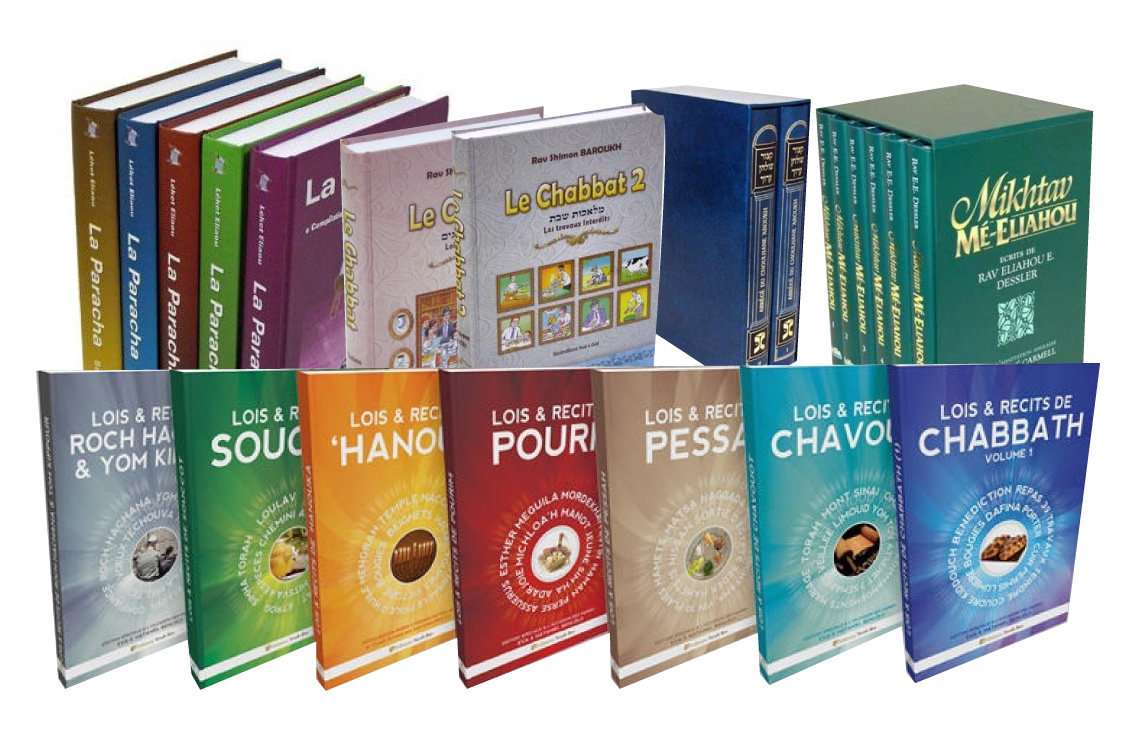 Différents styles de livres sont disponibles : Paracha, Halaha, Histoire juive, Biographies, Fêtes juives, Pensée juive...